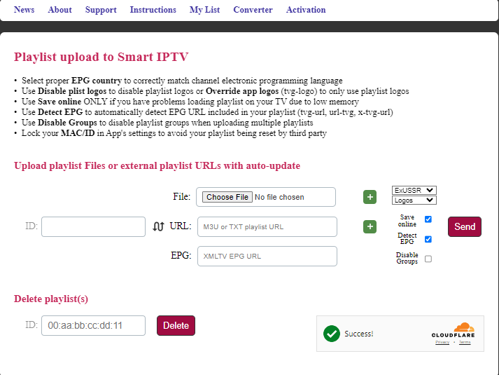 Step 3: Open the playlist uploader web page by opening this URL http://siptv.eu/mylist/
